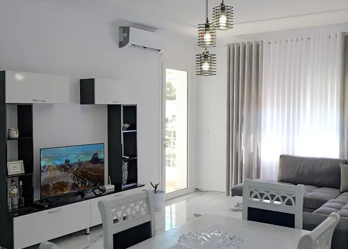 Agios Saranda befindet sich ca. 17 Minuten Gehweg von dem 55 m² großen Aldisen Apartment Sarandë entfernt und ist einen Besuch wert. Die Apartments bietet Ausblicke aufs Meer.